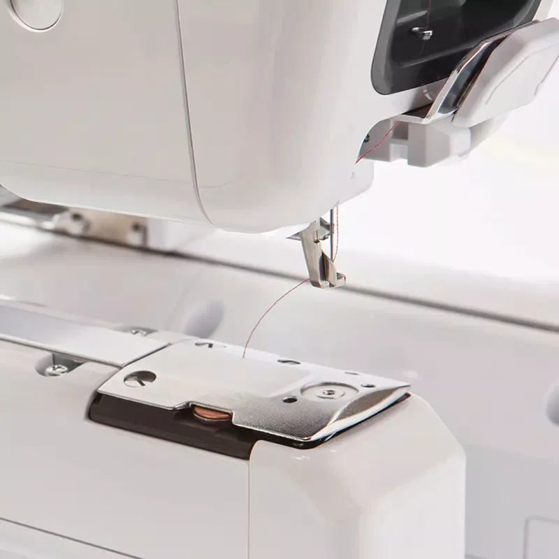 Chỉ với một thao tác bấm nút, máy đã sẵn sàng cho thao tác thêu tiếp theo. Nhanh chóng hơn khi không cần thực hiện trên màn hình.