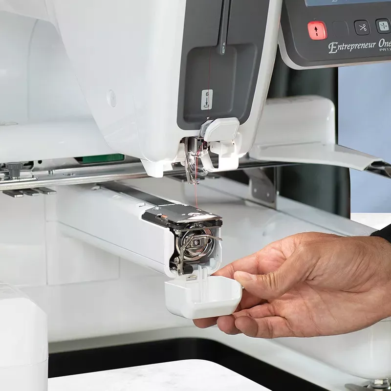 Với trục thêu thành phẩm (free arm), máy PR1X cởi bỏ các giới hạn thêu vi tính, bạn có thể xử lý thêu tại các vị trí khó nhất như tay áo, giày, tất, ống quần,...