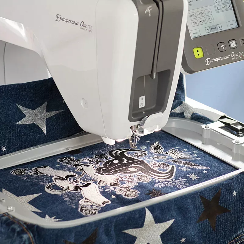 Đạt được độ chính xác tuyệt đối trên các thiết kế thêu với tính năng định vị bằng đèn laser chữ thập của PR1X. Đảm bảo định vị hoàn hảo vị trí thêu trên mọi loại vải.